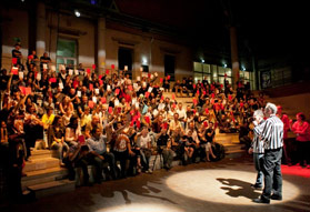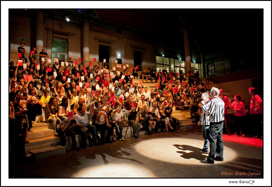 L'improvisation terminée, chaque spectateur est appelé à voter pour l'équipe qu'il a préférée en levant son carton de vote de couleur.